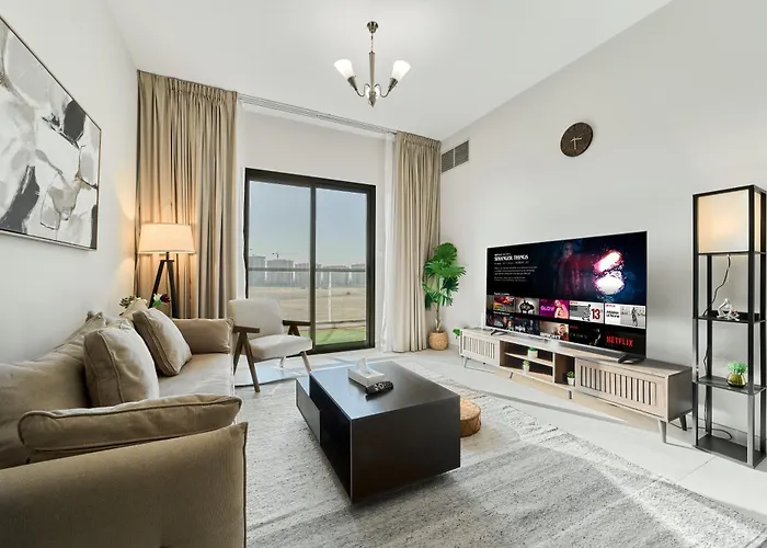 The 87 m² Chic 1Br Getaway In Tulip Oasis 9 Majan Apartment Dubai is nearly a 20-minute walk from Dubai World Cup and offers a terrace with a swimming pool. This spacious apartment comes with a private swimming pool and is within reach of Delta.
